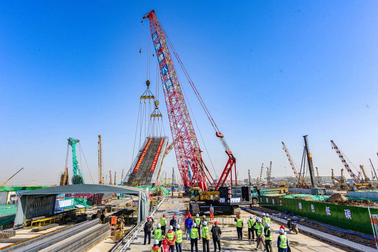 三月的濟(jì)南,春光明媚。在濟(jì)濱高鐵遙墻機(jī)場站施工現(xiàn)場機(jī)械轟鳴,熱火朝天,兩臺超百噸的履帶吊成功吊起重達(dá)38.22噸的地連墻鋼筋籠,“鋼鐵巨網(wǎng)”在空中實現(xiàn)“回直”,順利完成首幅吊裝入位,為圍護(hù)結(jié)構(gòu)連續(xù)施工奠定堅實基礎(chǔ)。