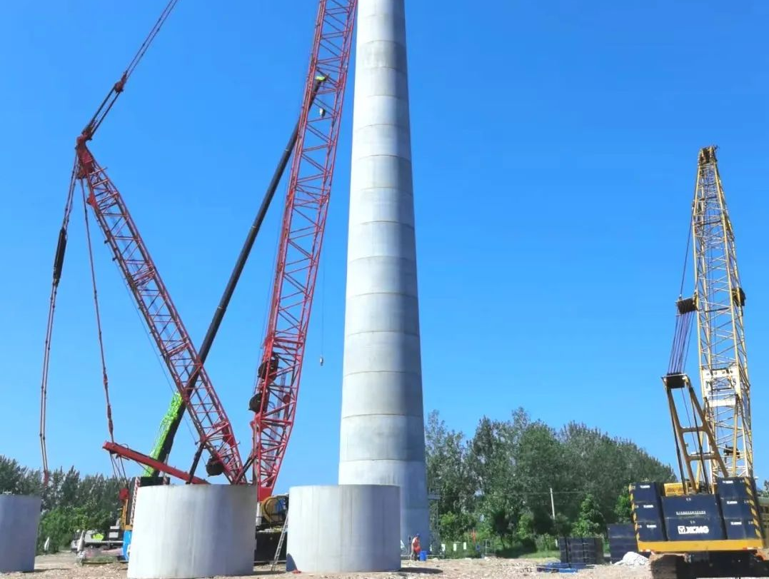 該項(xiàng)目為48MW分散式風(fēng)電項(xiàng)目的混塔管片供應(yīng),具有自重大、耐久性和穩(wěn)定性好等優(yōu)點(diǎn),尤其適用于低風(fēng)速、大風(fēng)切變、運(yùn)輸困難區(qū)域以及大單機(jī)容量機(jī)組。塔身混凝土塔段和鋼塔段的設(shè)計(jì)組成確保了結(jié)構(gòu)的穩(wěn)定與安全,可大幅減小頂端擺幅,提高發(fā)電量延長(zhǎng)機(jī)組疲勞壽命,且在生產(chǎn)過程中一次澆筑成形,色澤均勻、外形美觀、節(jié)能環(huán)保能,有效縮短施工周期,是風(fēng)電行業(yè)發(fā)展的趨勢(shì)。