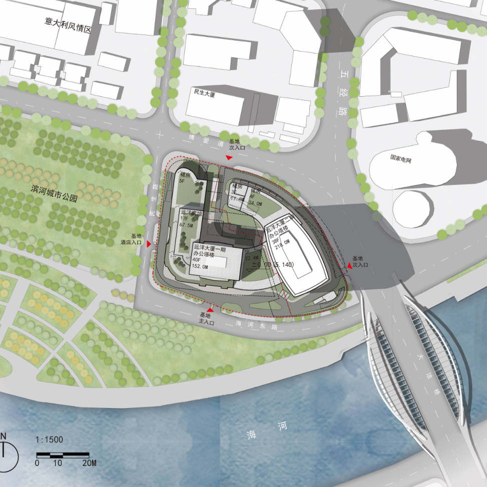 項目地處天津市區(qū)核心位置,南臨海河,東臨大沽橋毗鄰天津站,地理位置優(yōu)越,總建筑面積約10.79萬平方米,建設(shè)高度218米,分為地下5層,地上38層,項目建成后將成為全市港產(chǎn)城融合發(fā)展的重要載體,海河沿線重要的地標(biāo)建筑,為推動天津市港產(chǎn)城融合發(fā)展賦能聚力。
