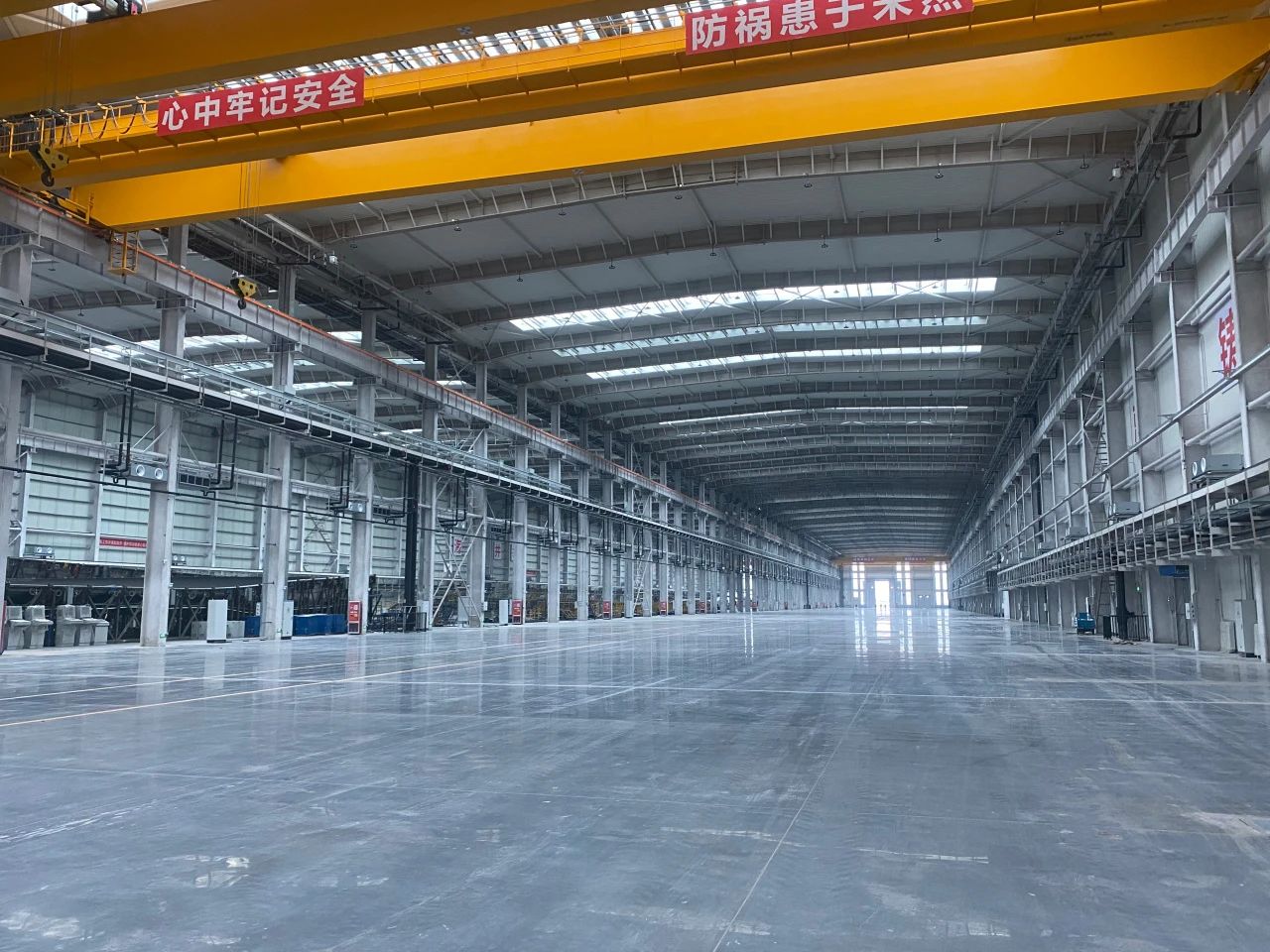 自2023年2月14日開工以來,項目按照“適時生產(chǎn)”管理思路,順利攻克一批關(guān)鍵節(jié)點:3個月完成首座單體封頂、90天完成單體7萬平方米鋼結(jié)構(gòu)廠房的結(jié)構(gòu)施工。