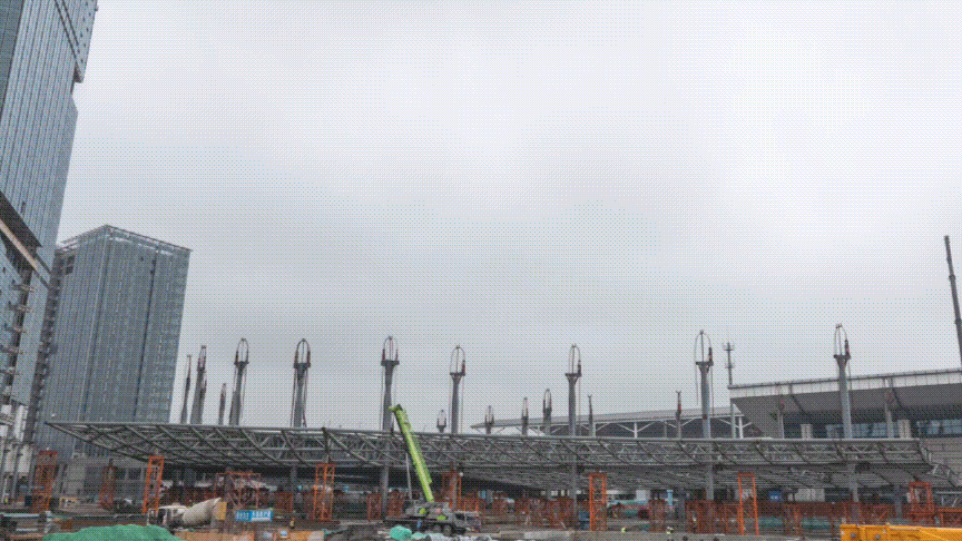 紹興高鐵北站TOD綜合體項目(A區(qū)塊)完成Q5樞紐管桁架全面提升