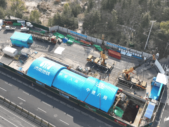 濟(jì)南軌道交通7號(hào)線的滑移型氣肋式基坑氣膜屬全國首例,也是基坑氣膜在地鐵項(xiàng)目的首次應(yīng)用。通過安裝高強(qiáng)度、高耐久性、防火性能好的充氣膜材料,向膜內(nèi)充氣,在工地上方形成一個(gè)密閉的空間,具有良好的隔音和防塵性能,同時(shí)還能保溫、防雨雪,改善冬季施工環(huán)境,給建設(shè)者們提供更好的施工條件。