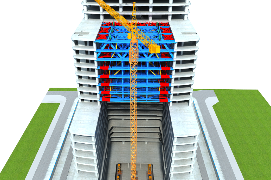 項目團隊通過模擬計算與電子設(shè)備集中控制,準確完成鋼連廊提升過程中的數(shù)據(jù)反饋和控制指令傳遞實現(xiàn)同步動作、負載均衡、姿態(tài)矯正應(yīng)力控制、操作閉鎖等功能有效解決了有限空間下大跨度超高層鋼連廊施工難題。