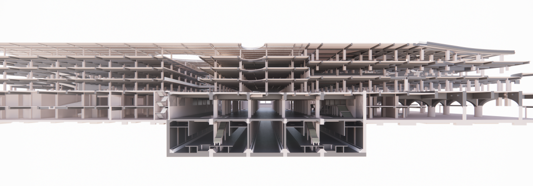 項(xiàng)目主體為地下2層建筑,與濟(jì)濱高鐵、多條地鐵接駁,建筑結(jié)構(gòu)深入地下21米,土方開挖量達(dá)64.6萬立方米,是省內(nèi)規(guī)模最大明挖地下高鐵車站基坑,相當(dāng)于在遙墻機(jī)場下方建設(shè)一座“地下城”。