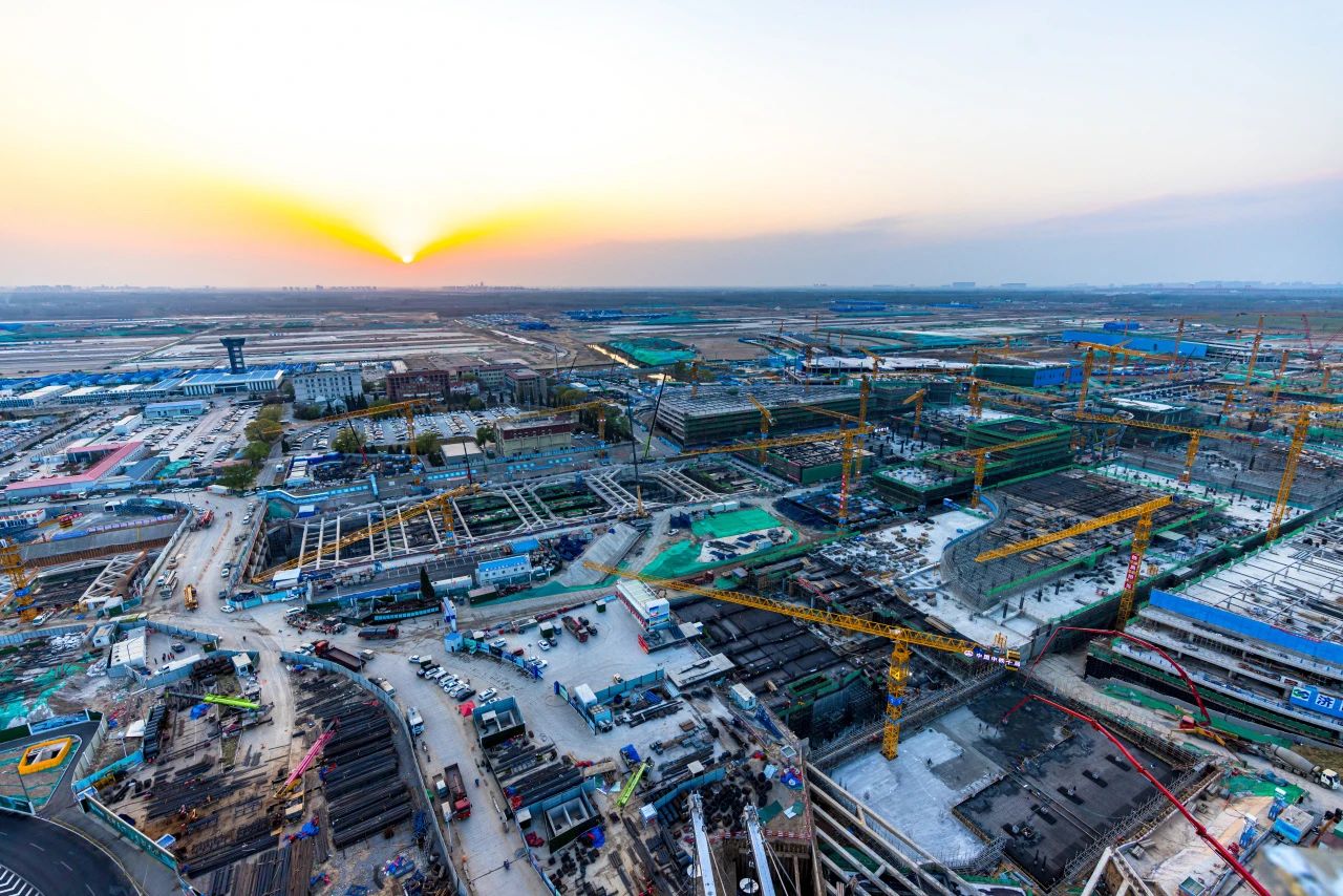 自2023年11月開工以來,項(xiàng)目掛圖作戰(zhàn),高效建設(shè)高峰時(shí)期投入作業(yè)人員1200余人、各類機(jī)械設(shè)備60余臺套,提前兩個(gè)半月完成152幅地連墻吊裝施工,提前半個(gè)月完成2063根樁基施工,提前10天完成首塊底板澆筑,提前兩個(gè)月實(shí)現(xiàn)主體結(jié)構(gòu)封頂,以匠心品質(zhì)與精湛技藝讓一座“遁入地下”的高鐵站房正在從藍(lán)圖化為現(xiàn)實(shí)。