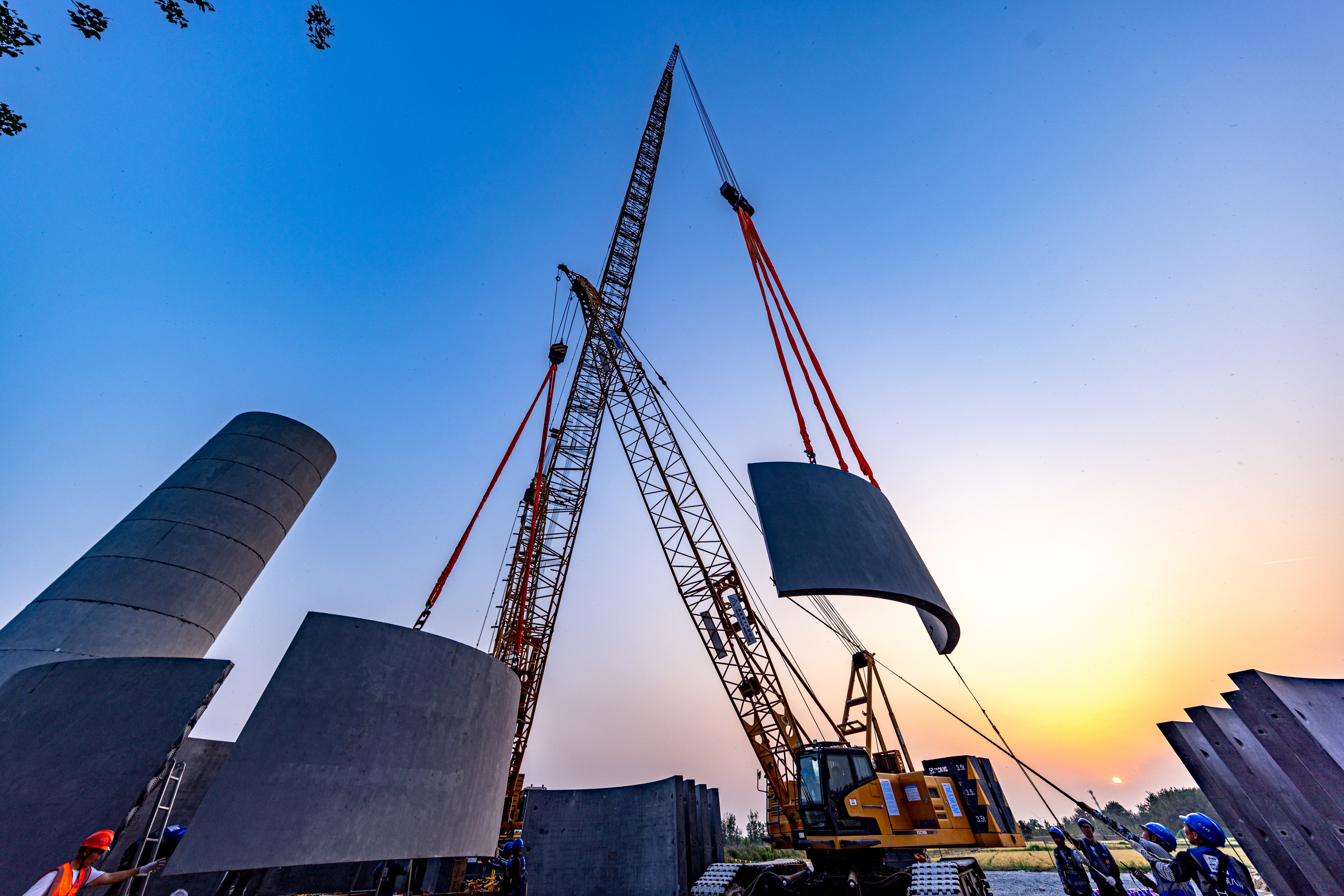此次吊裝的風(fēng)機(jī)高185米,采用“主吊+副主吊”吊裝方式,實(shí)現(xiàn)46節(jié)混塔與2節(jié)鋼塔高強(qiáng)螺栓連接,127噸機(jī)艙、直徑220米葉輪升空固定。項(xiàng)目團(tuán)隊(duì)高度重視前期策劃,提前32天完成7個(gè)鄉(xiāng)鎮(zhèn)、20個(gè)行政村協(xié)調(diào)工作,采用“一機(jī)一案”的施工方式,克服大件運(yùn)輸、大型設(shè)備吊裝危大工程管控等難點(diǎn)。“吊裝小組”使用智能化風(fēng)速儀、無人機(jī)、360°攝像頭等實(shí)時(shí)監(jiān)測(cè),護(hù)航吊裝全過程,順利完成首臺(tái)風(fēng)機(jī)百米吊裝。