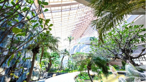 場館內(nèi)部打造約4000平方米的綠植生態(tài),其中,1000平方米溫室雨林館內(nèi)將展出珍稀的新加坡植物,通過傳統(tǒng)建筑語言的現(xiàn)代化構(gòu)建、內(nèi)部空間溫室化、生境營建等綠色技術(shù)的綜合應(yīng)用,營造一個低碳、舒適、健康的開放空間。