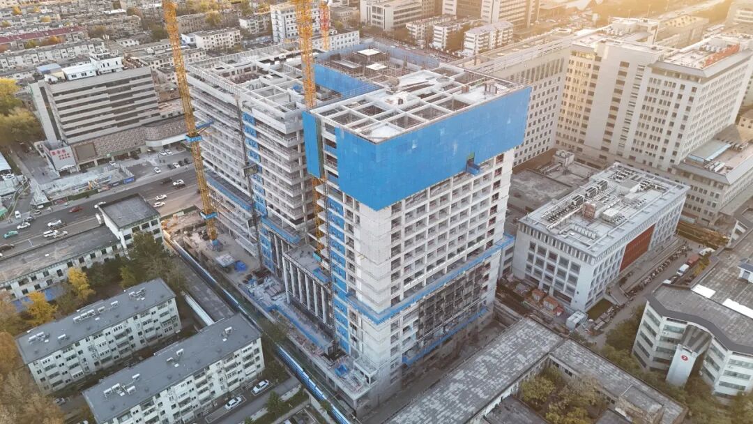 作為國家 “十四五” 重點(diǎn)建設(shè)項(xiàng)目、山東省重點(diǎn)民生工程及國家中醫(yī)疫病防治基地,該項(xiàng)目是中建八局一公司與山東中醫(yī)藥大學(xué)附屬醫(yī)院的第四次攜手合作。項(xiàng)目總建筑面積達(dá) 11.26 萬平方米,涵蓋體檢中心、潔凈手術(shù)、ICU 等多個(gè)功能區(qū),規(guī)劃床位 810 張,建成后將為區(qū)域醫(yī)療健康保障注入強(qiáng)勁動(dòng)力。然而,項(xiàng)目建設(shè)面臨的挑戰(zhàn)堪稱 “極限”:南側(cè)距地鐵出入口僅 4 米,西側(cè)與醫(yī)院華佗樓間距不足 2 米,東側(cè)、北側(cè)被校園環(huán)繞,場地空間極度受限;同時(shí)地處濟(jì)南富水地層,對(duì)噪音控制、揚(yáng)塵治理及泉脈保護(hù)提出了極高要求。
