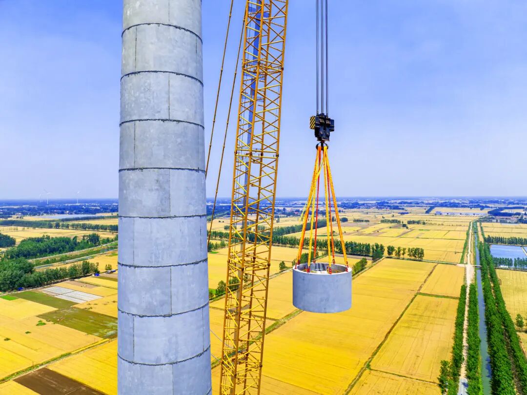 項(xiàng)目風(fēng)機(jī)輪轂安裝高度 185 米,與同類型風(fēng)機(jī)相比堪稱 “大個(gè)子”,施工過程中連續(xù)攻克大型設(shè)備長途運(yùn)輸、管片生產(chǎn)、高空吊裝等系列難題。