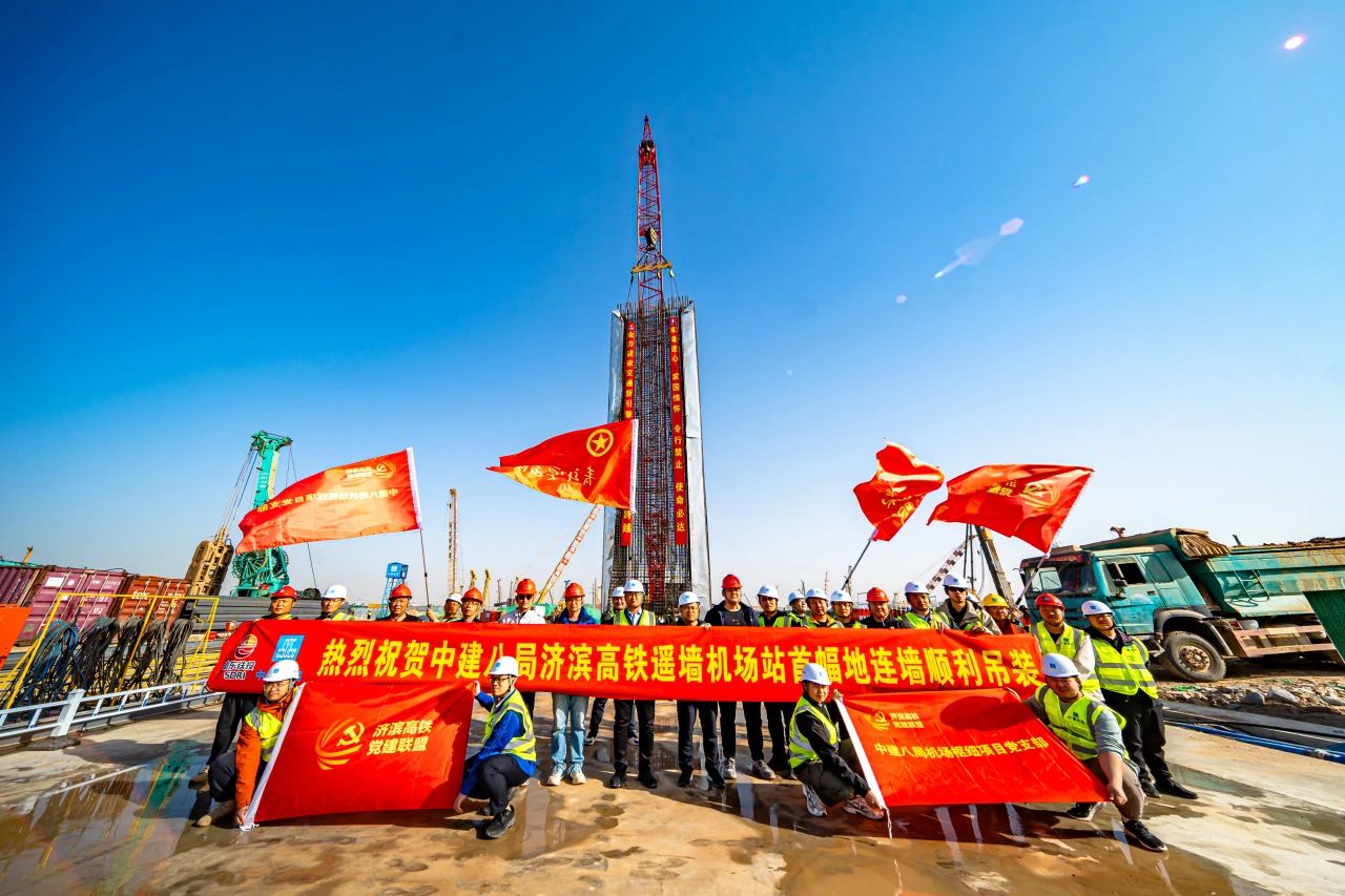 三月的濟(jì)南,春光明媚。 在濟(jì)濱高鐵遙墻機(jī)場站施工現(xiàn)場機(jī)械轟鳴,熱火朝天,兩臺超百噸的履帶吊成功吊起重達(dá)38.