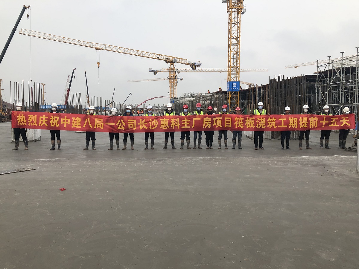長(zhǎng)沙惠科項(xiàng)目 主廠房D區(qū)筏板提前15天澆筑完成