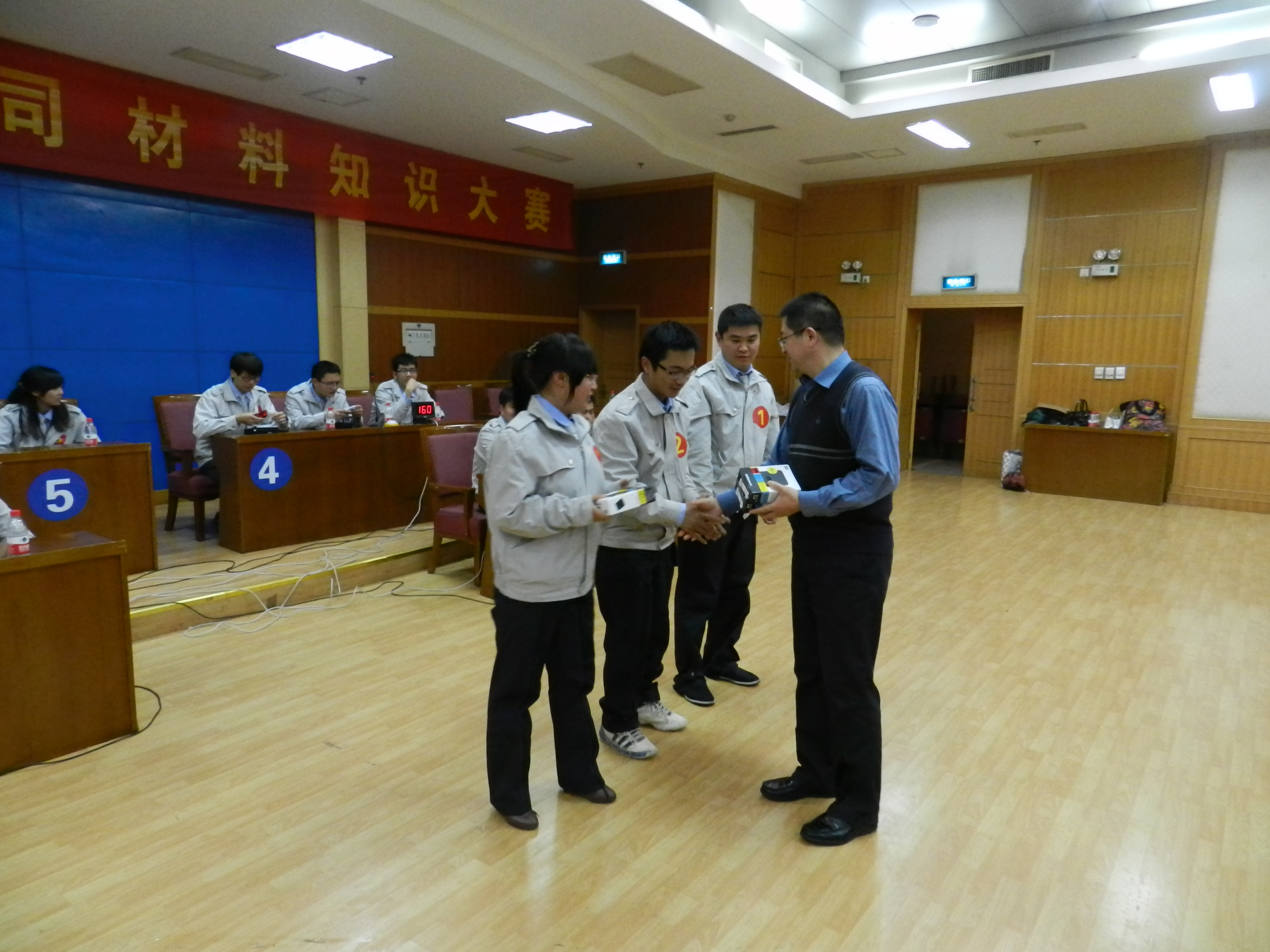 大賽首先由公司總經(jīng)濟(jì)師車總致辭,車總強(qiáng)調(diào)了材料知識(shí)的重要性,要求大家要深入學(xué)習(xí),學(xué)以致用。分公司總經(jīng)濟(jì)師韓總宣布比賽正式開(kāi)始。比賽過(guò)程中,參賽人員發(fā)揚(yáng)鐵軍精神,賽出了水平、賽出了激情,充分展示了奮勇?tīng)?zhēng)先、積極向上的精神風(fēng)貌。最后,公司物資部梁經(jīng)理進(jìn)行了大賽總結(jié),對(duì)此次大賽的組織與成果進(jìn)行了高度評(píng)價(jià),同時(shí)要求大家加強(qiáng)學(xué)習(xí),并對(duì)獲獎(jiǎng)隊(duì)伍表示祝賀,為本次大賽畫上了圓滿的句號(hào)。