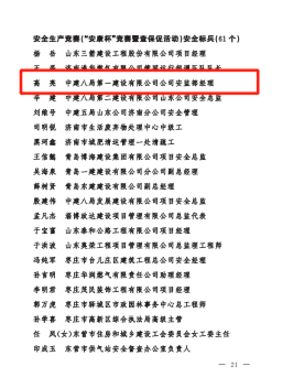 正值建黨百年之際,公司在山東省住建系統(tǒng)重點工作攻堅勞動競賽先進(jìn)典型選樹活動中斬獲多項榮譽,包括山東省住建系統(tǒng)改革創(chuàng)新攻堅競賽示范企業(yè)(一公司)、山東省住建系統(tǒng)重點工程攻堅勞動競賽示范企業(yè)(一公司)、山東省住建系統(tǒng)重點工程攻堅勞動競賽示范項目部(魯南高鐵、農(nóng)業(yè)工程學(xué)院淄博校區(qū))、山東省住建系統(tǒng)安全生產(chǎn)競賽(“安康杯”競賽暨查保促活動)優(yōu)勝單位(一公司)、山東省住建系統(tǒng)安全生產(chǎn)競賽(“安康杯”競賽暨查保促活動)優(yōu)勝項目部(平安360)、山東省住建系統(tǒng)勞模和工匠人才創(chuàng)新工作室(趙忠楊超高層高效建造創(chuàng)新工作室)等6項集體榮譽和山東省住建系統(tǒng)改革創(chuàng)新標(biāo)兵(1人)、山東省住建系統(tǒng)重點工程攻堅勞動競賽標(biāo)兵(2人)、山東省住建系統(tǒng)安全生產(chǎn)競賽(“安康杯”競賽暨查保促活動)安全標(biāo)兵(1人)等3項個人榮譽。