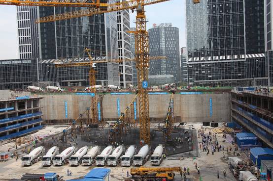 項目自主研發(fā)的免泵送大體積混凝土溜管施工技術解決了現(xiàn)場狹窄、筏板混凝土澆筑體量大等問題,該技術實施過程瞬時速度達5分鐘320立方米,創(chuàng)全國第一,平均速度20小時11000立方米,創(chuàng)山東第一。該項技術獲得山東省優(yōu)秀工法、中建八局QC成果一等獎,經鑒定達到了國際先進水平。