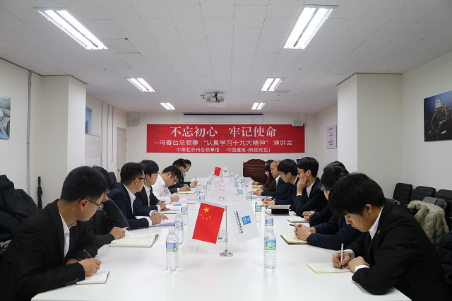 On the afternoon of December 17, Feng Chuntai, Consul-general of China Consulate General in Jeju Visited the Dream Mansion Project and Held a Speech on “Studying the Spirit of the 19th National Congress Earnestly”. Gao Jigui, the general Party branch secretary of overseas business division, and members, league branch secretary and all party members of Dream Mansion and Jeju Yihe Cypress Projects attended this speech.