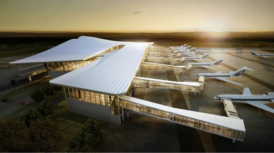 航站樓的設(shè)計(jì)理念汲取當(dāng)?shù)厣詈竦娜寮椅幕c獨(dú)有的運(yùn)河文化航站樓屋面造型初見,如璞玉般明潤(rùn)和諧,又如祥云般蒸騰而升。項(xiàng)目從“祥云璞玉”的儒圣精神著手,暗合“君子如玉”的儒家精神,屋檐走勢(shì)如水,波浪起伏,象征著運(yùn)河文化帶來(lái)的流暢與鮮活,將古建筑“重檐屋頂、斗拱、柱列”的特點(diǎn),與現(xiàn)代機(jī)場(chǎng)建設(shè)相結(jié)合,典雅溫潤(rùn),渾然天成。室內(nèi)以“大成飛檐、河映孔孟”為主題,氛圍儒雅詩(shī)意,吊頂順應(yīng)天窗形式,展現(xiàn)出運(yùn)河融南匯北的壯美畫卷,運(yùn)河之都,名副其實(shí),打造濟(jì)寧獨(dú)特的儒家文化名片。