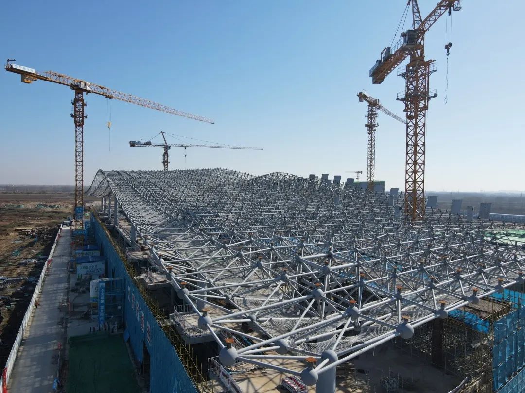項(xiàng)目擁有復(fù)雜多變的結(jié)構(gòu)形式,包含航站樓、高架橋、塔臺(tái)等24個(gè)單體結(jié)構(gòu),建筑造型豐富、結(jié)構(gòu)形式多樣、參考標(biāo)準(zhǔn)繁多。航站樓屋面的大跨度雙曲鋼結(jié)構(gòu)網(wǎng)架結(jié)構(gòu)高架橋的清水混凝土效果預(yù)應(yīng)力現(xiàn)澆箱梁,玻璃幕墻的外傾框架拉桿組合式結(jié)構(gòu)都對(duì)現(xiàn)場(chǎng)施工提出很大挑戰(zhàn)。