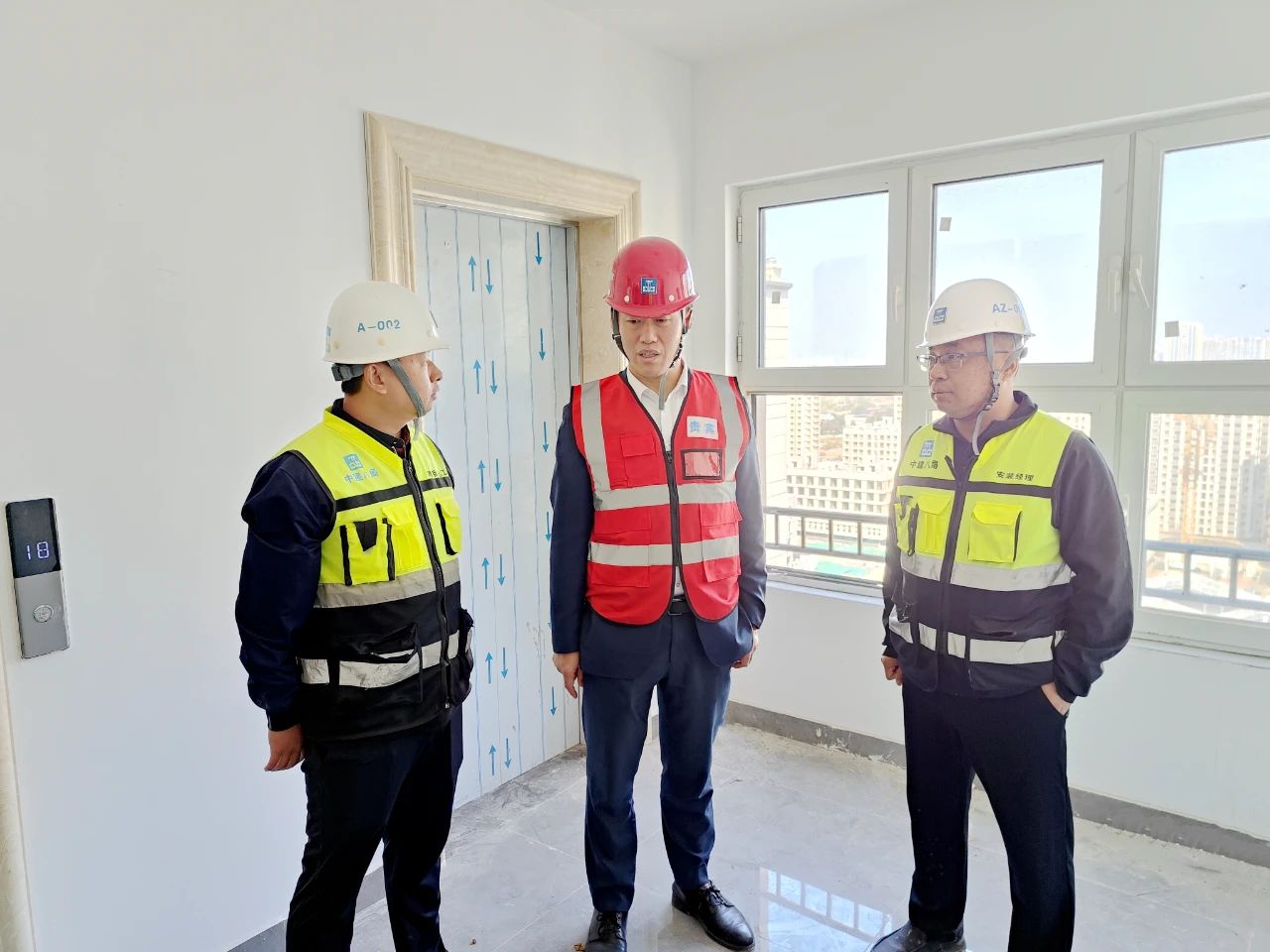 10月24日,中建八局一公司黨委副書記、總經(jīng)理?;瘧椀絿夷茉醇瘓F雄安基地項目開展“四不兩直”安全帶班檢查,中建八局一公司副總經(jīng)理霍文濤,副總經(jīng)理、總工程師谷力,華北公司相關負責人參加檢查。