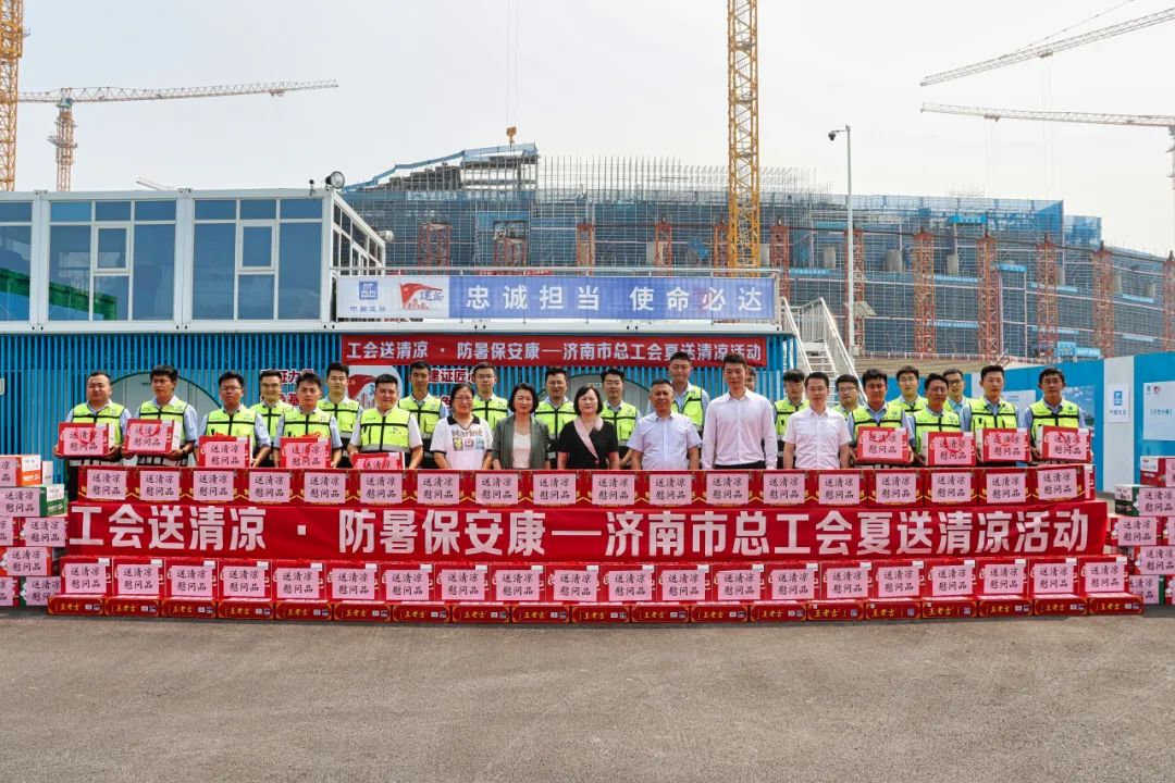 7月20日,濟(jì)南市總工會赴濟(jì)南黃河體育中心專業(yè)足球場項目開展“夏送清涼”慰問活動,濟(jì)南市總工會黨組成員、副主席申世平,直屬工會聯(lián)合會主席張云來,女職工部副部長秦立艷,公司黨委副書記、工會主席聶麗,工會工作部及濟(jì)南公司相關(guān)負(fù)責(zé)人參加。