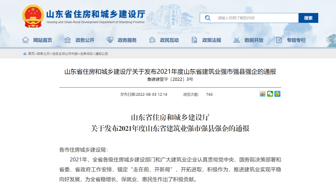 中建八局一公司位列2021年度山東省建筑業(yè)強企第2名