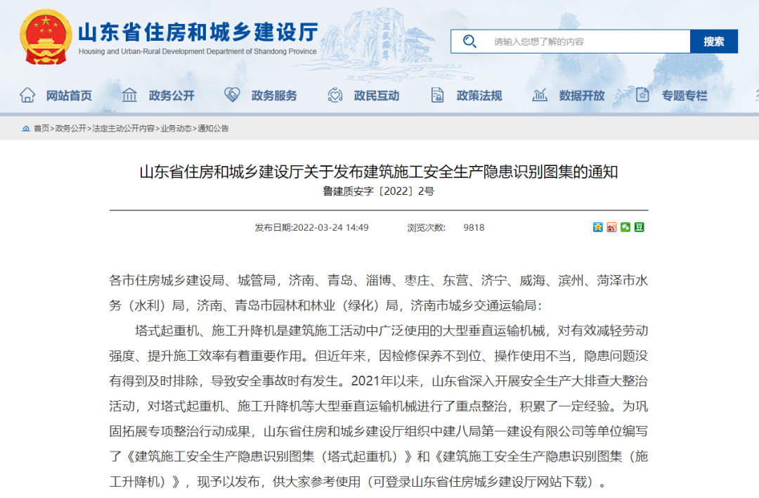 近日,由中建八局一公司“主筆”的《建筑施工安全生產(chǎn)隱患識別圖集(塔式起重機)》和《建筑施工安全生產(chǎn)隱患識別圖集(施工升降機)》,在山東省住房和城鄉(xiāng)建設(shè)廳官網(wǎng)發(fā)布,成為全省建筑施工隱患排查治理的重要參考、機械設(shè)備安全管理的指導(dǎo)文件。