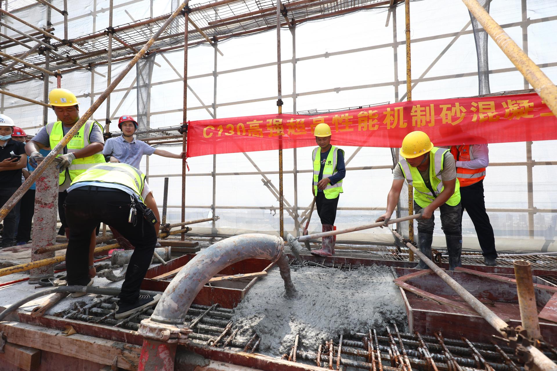 9月30日,中建八局一公司在廣州新世界增城發(fā)展中心項目,實現(xiàn)了行業(yè)內(nèi)首次在實體工程建設(shè)中泵送應(yīng)用C130超高強機制砂混凝土,泵送高度超過220米,混凝土抗壓強度達149.