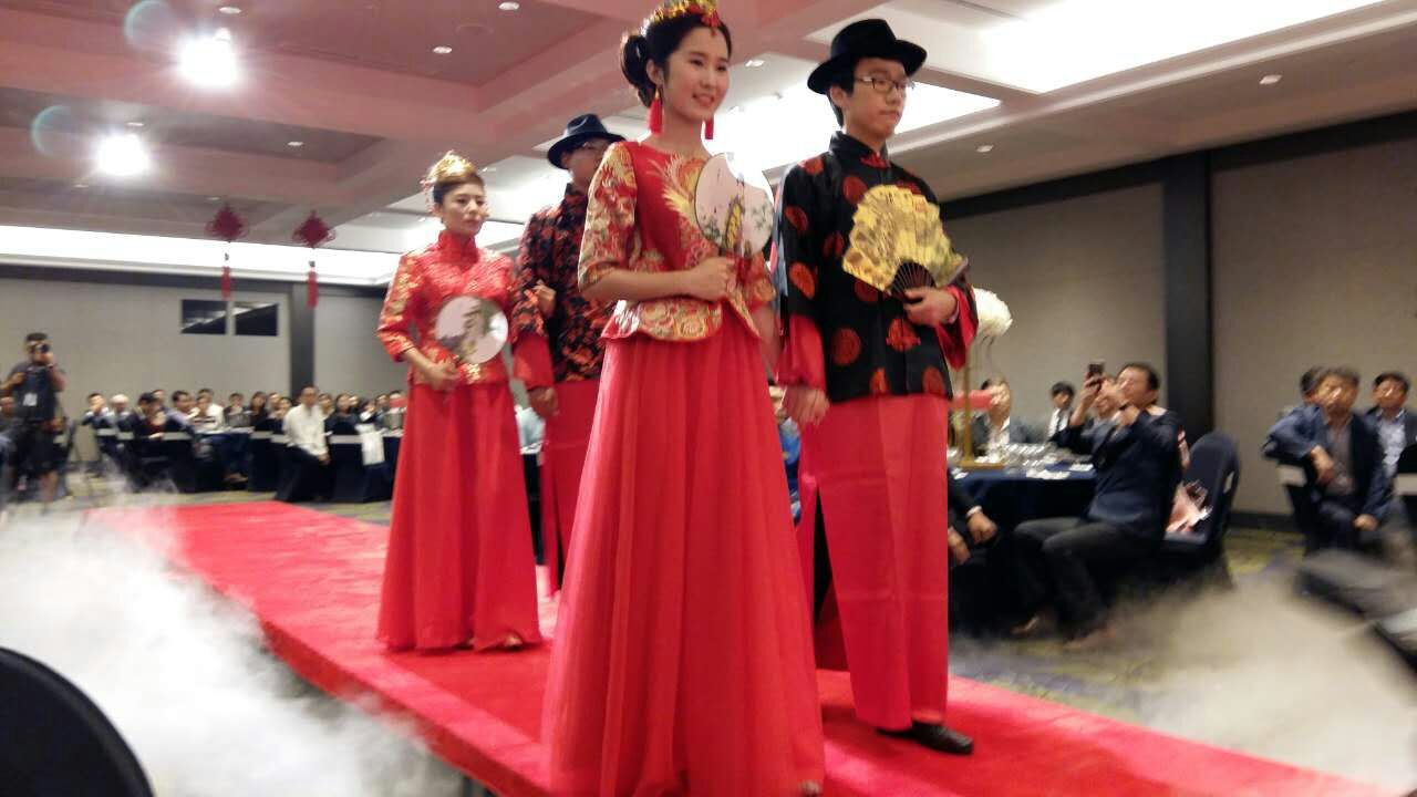 11點18分,婚禮儀式正式開始。在新人登場前,各界來賓共同觀看了公司“豐碑”宣傳片。隨后,具有中國特色的中式婚禮大典正式拉開序幕。在溫馨浪漫的音樂聲中,六對新人通過不同的服裝來展現(xiàn)不同特色的中式婚禮,分為漢式新人、唐裝新人、秀禾新人三幅篇章。別具一格的精彩呈現(xiàn),展現(xiàn)中國傳統(tǒng)文化博大精深,源遠流長,在座賓客無不拍手稱贊。在主婚、證婚、送祝福的環(huán)節(jié)中,主婚人馮春臺以對聯(lián)的形式祝愿新人開啟新生活、新天地;證婚人王有標代表公司董事長、黨委書記李永明,總經(jīng)理、黨委副書記董文祥為六對新人送上美好祝福,同時感謝各位來賓的對本次活動的支持,也祝愿海外事業(yè)部蓬勃發(fā)展;哈小平美好祝福的同時為新人們送來神秘禮物―“濟州五日游”;國會議員金太石引用詩句祝福六對新人永遠幸福,表示被今天華麗的中國式婚禮所震撼、感動;綠地韓國公司社長姜敏揮祝愿所有新人生活美滿幸福、白頭偕老,永結(jié)同心,也表示雖然在中國居住8年,但像今天如此盛大的婚禮還是第一次,為之感動震撼。