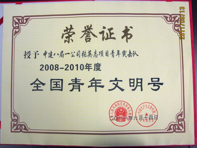 ――張英志項目青年突擊隊榮獲全國青年文明號稱號