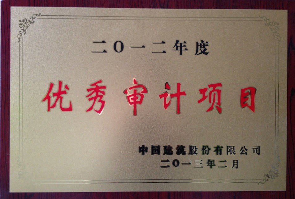 審計部獲得總公司2012年度“優(yōu)秀審計項目”獎