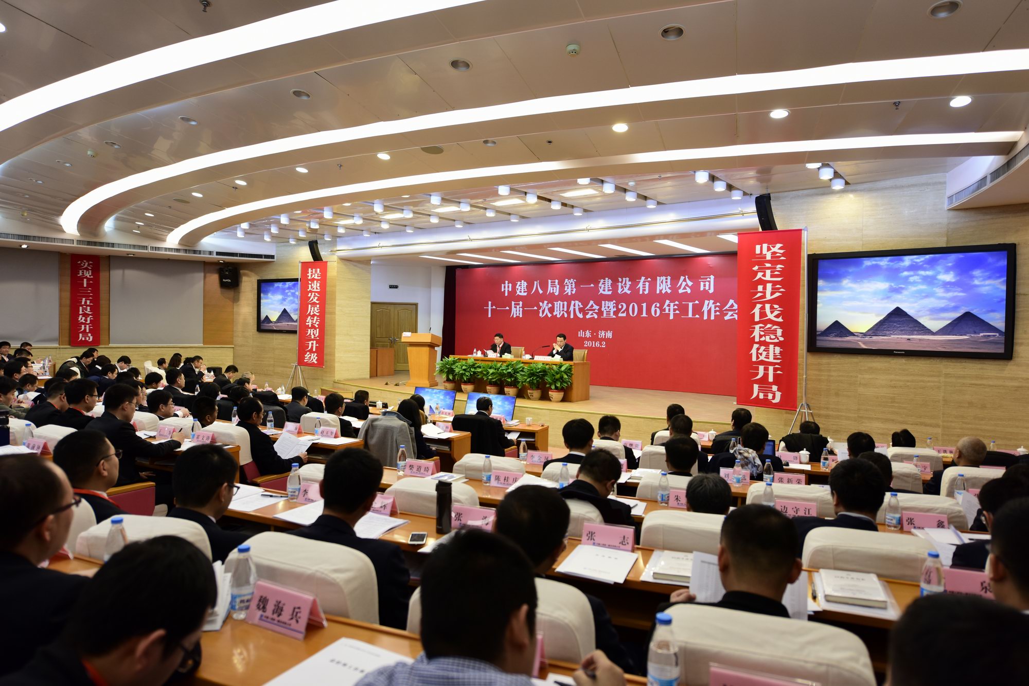 董文祥在工作報(bào)告中從“逆市上揚(yáng)、主要指標(biāo)全面領(lǐng)先”“砥礪奮進(jìn),營(yíng)銷品質(zhì)持續(xù)夯實(shí)”“堅(jiān)定步伐,結(jié)構(gòu)調(diào)整高點(diǎn)起步”“精益管控,運(yùn)營(yíng)管控提質(zhì)增效”“以點(diǎn)帶面,創(chuàng)新驅(qū)動(dòng)管理升級(jí)”“總部引領(lǐng),打造集約化管控平臺(tái)”“強(qiáng)化素質(zhì),夯實(shí)轉(zhuǎn)型發(fā)展人才動(dòng)力”七個(gè)方面總結(jié)了公司2015年總體運(yùn)營(yíng)情況。并結(jié)合目前市場(chǎng)形勢(shì),以及總公司、局的發(fā)展導(dǎo)向,制定了公司2016年主要發(fā)展目標(biāo),確定了公司2016年總體工作思路,從做大市場(chǎng)份額、破題總承包管理、筑牢品牌保障、探索科技創(chuàng)效、確保穩(wěn)健經(jīng)營(yíng)、增強(qiáng)后臺(tái)建設(shè)六個(gè)方面部署了2016年主要工作。