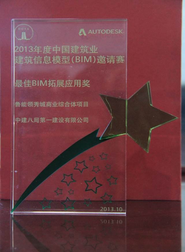 “2013年度中國建筑業(yè)建筑信息模型(BIM)邀請賽”,是由中國建筑業(yè)協(xié)會綠色施工分會與歐特克軟件(中國)有限公司聯(lián)合舉辦旨在落實國家綠色建筑方案、推動企業(yè)綠色施工技術(shù)改造升級,面向全行業(yè)各建設(shè)協(xié)會、設(shè)計及施工單位的高規(guī)格企業(yè)級專業(yè)賽事。賽事共設(shè)三項大獎――“最佳協(xié)同及數(shù)據(jù)互用獎”、“最佳拓展應用獎”、“最佳企業(yè)應用獎”。公司申報的《魯能領(lǐng)秀城商業(yè)綜合體項目――BIM技術(shù)的運用》,以其詳盡、全面、專業(yè)等特點,贏得了評委的認可,最終摘得“最佳拓展應用獎”。