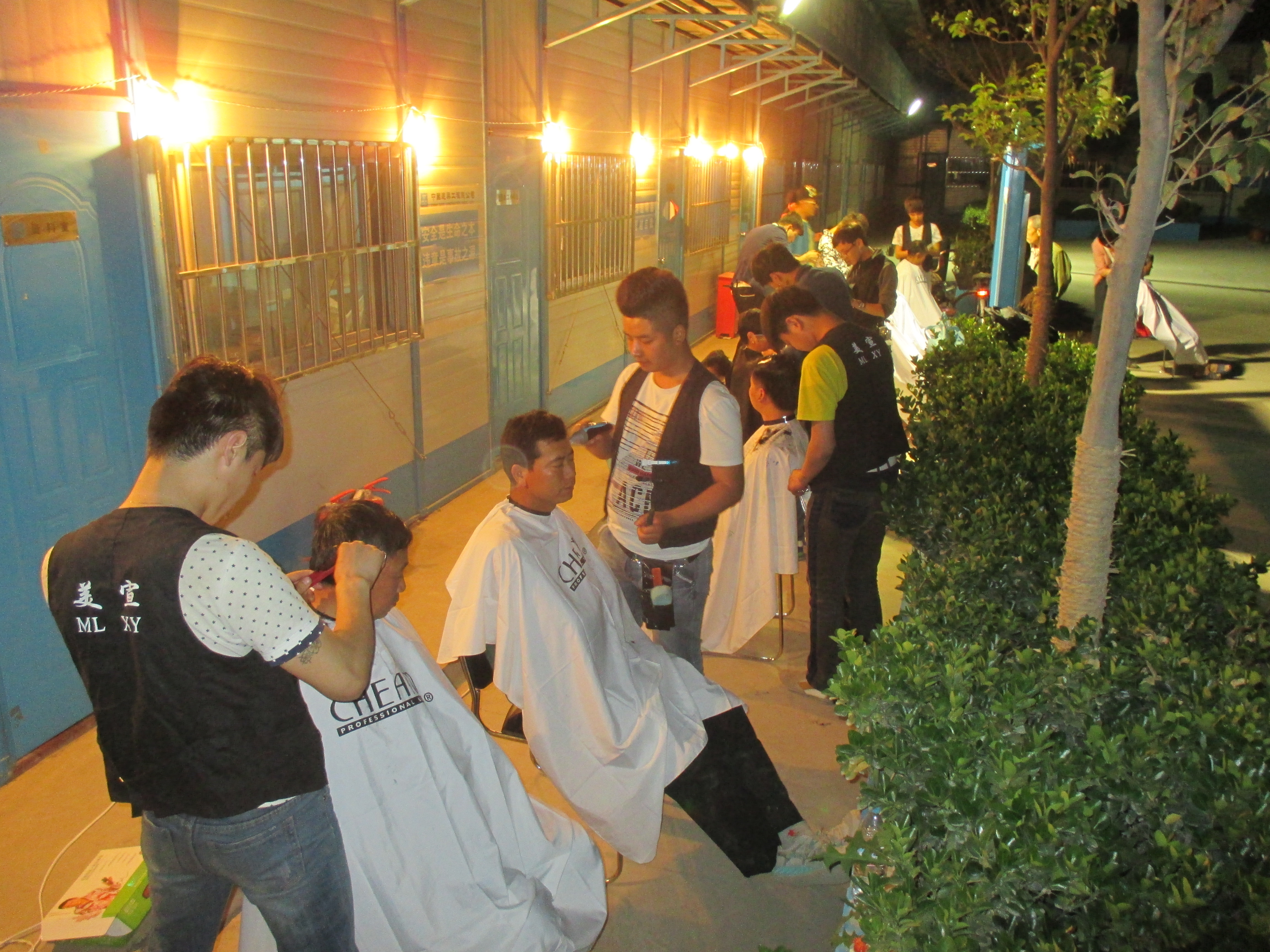 5月15日下午,東城逸家項目部從濟南“美宣美發(fā)”請來了13名理發(fā)師,為工地上的外來務(wù)工人員理發(fā)。從下午5點半到晚上10點,先后有110名農(nóng)民工兄弟姐妹接受了這項特殊的服務(wù),他們當中有20出頭的年輕小伙兒,也有年過半百的大叔大嬸兒。為了保證理發(fā)的效果,項目部還專門拉起電線,裝上燈泡,為理發(fā)師們照明。
