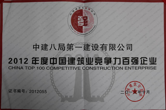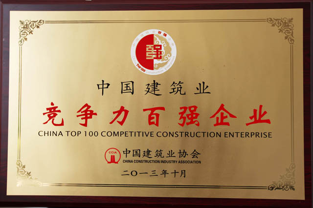 公司榮獲中國建筑業(yè)競爭力百強企業(yè)稱號
