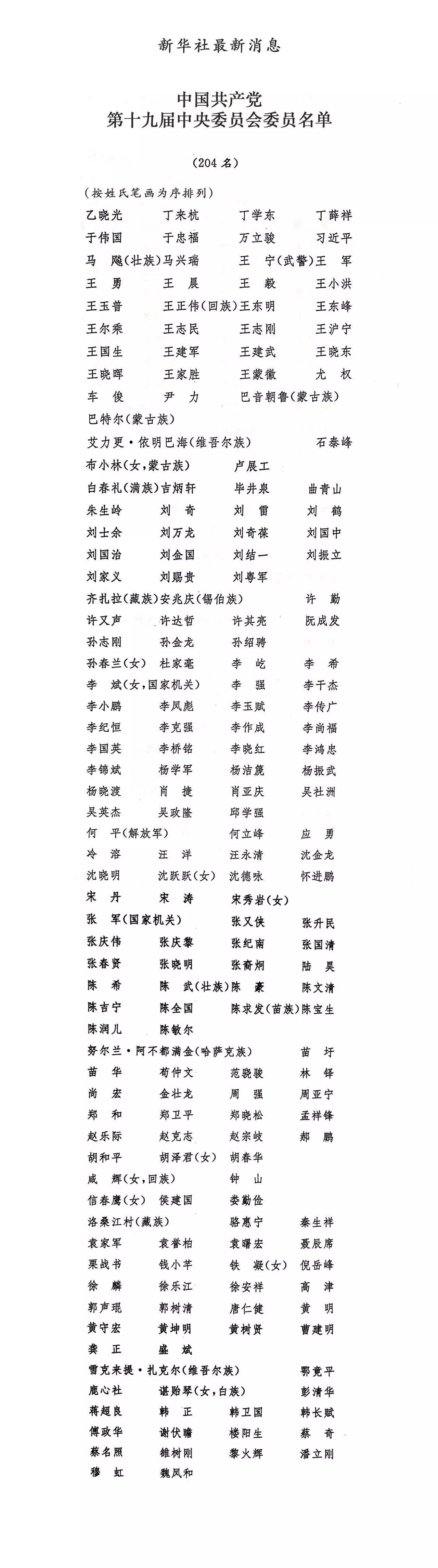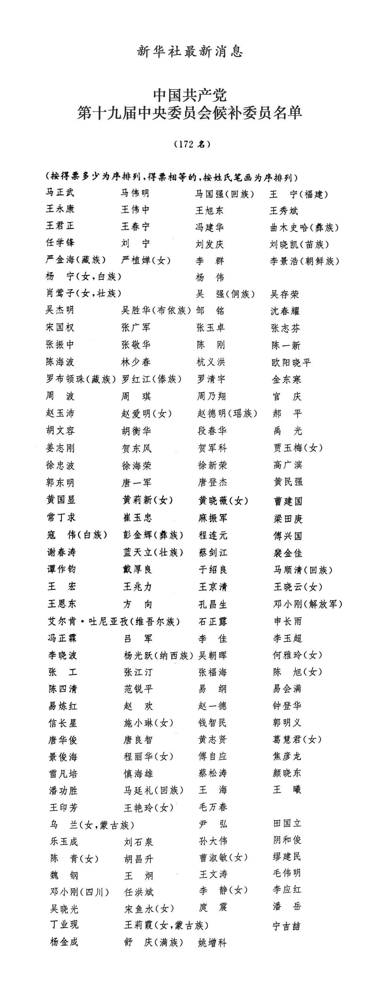 官慶當(dāng)選為十九屆中央委員會候補(bǔ)委員
