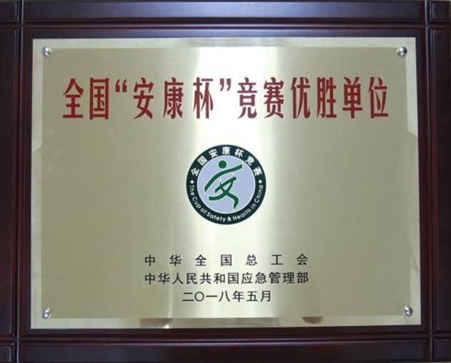 公司榮獲全國安全生產(chǎn)最高榮譽——全國“安康杯”競賽優(yōu)勝單位