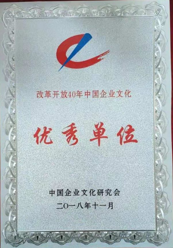 “改革開放40年中國企業(yè)文化優(yōu)秀單位”獎狀