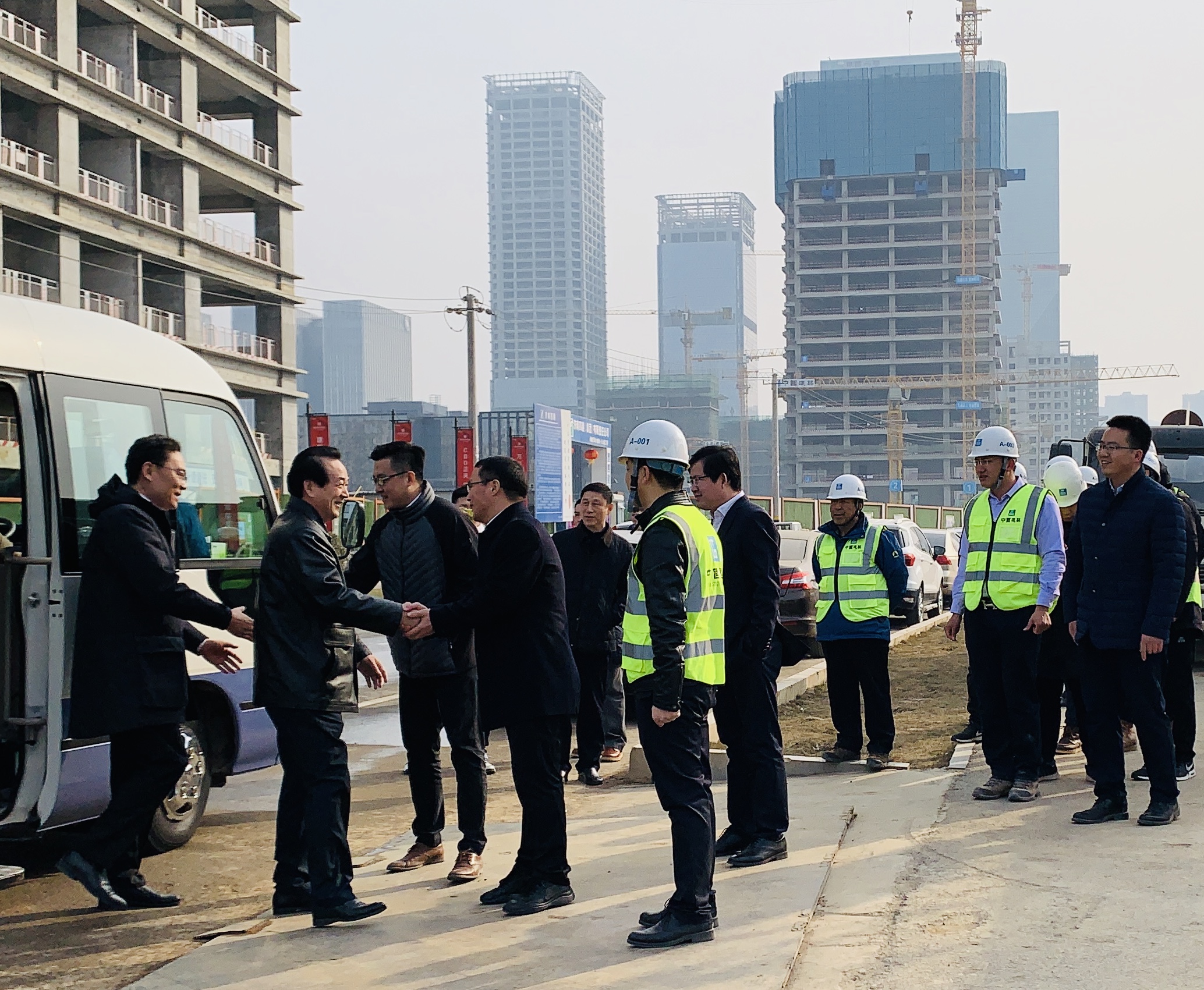 2月11日正月初七,公司黨委書記、董事長董文祥,濟南公司黨委書記畢延寶在平安金融中心項目現場迎接了由濟南市人大常委會主任、黨組書記殷魯謙,市委常委、副市長、市政府黨組副書記徐群,副市長李自軍,歷下區(qū)區(qū)委區(qū)政府主要領導,濟南城市建設投資集團主要領導組成的項目觀摩團,平安地產項目負責人王強及項目經理趙忠楊陪同檢查。