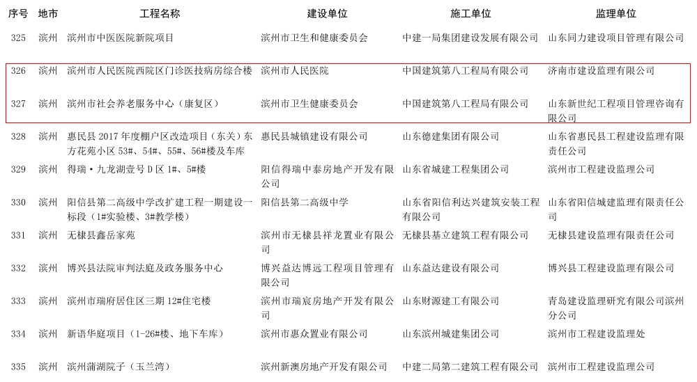 12月9日山東省住房和城鄉(xiāng)建設(shè)廳官網(wǎng)公示了2019年度省建筑施工安全文明標(biāo)準(zhǔn)化工地名單,濟(jì)南公司所屬項(xiàng)目:山東出版集團(tuán)圖書展示樓、濟(jì)南平安中央商務(wù)區(qū)(仁恒世紀(jì)廣場(chǎng))、西客站片區(qū)高鐵圍合南 A-1 地塊、濟(jì)南萬達(dá)文化體育旅游城萬達(dá)茂、雪山片區(qū)一期 C-02 地塊、濱州市人民醫(yī)院西院區(qū)門診醫(yī)技病房綜合樓、濱州市社會(huì)養(yǎng)老服務(wù)中心(康復(fù)區(qū))共計(jì)七個(gè)項(xiàng)目獲評(píng)“山東省建筑施工安全文明標(biāo)準(zhǔn)化工地”稱號(hào)。(呂良)