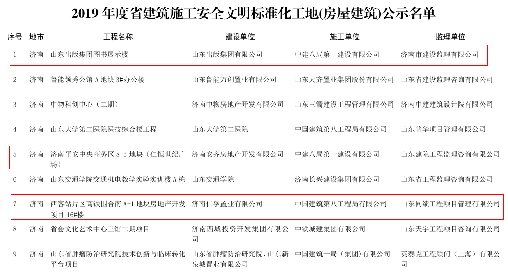 濟(jì)南公司七個(gè)項(xiàng)目獲評(píng)2019年度“山東省建筑施工安全文明標(biāo)準(zhǔn)化工地”稱號(hào)