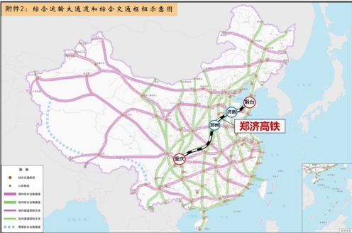 鄭濟(jì)高鐵是國(guó)家“十三五”現(xiàn)代綜合交通運(yùn)輸體系發(fā)展規(guī)劃中“十縱十橫”綜合運(yùn)輸大通道的“第十縱” (煙臺(tái)至重慶運(yùn)輸通道)和山東省“三橫四縱五連”綜合運(yùn)輸通道的重要組成部分,橫向連接京滬、京廣、京九等縱向干線鐵路,是河南省“米”字形高鐵網(wǎng)的重要組成部分。