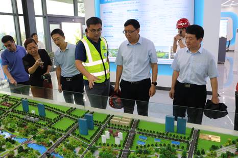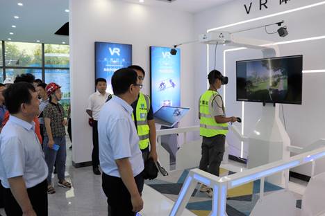 緊接著,栗建昌一行來到楊家河項目“智慧水務(wù)”中心。項目經(jīng)理劉凱從沙盤布置、VR安全體驗、企業(yè)文化、智慧工地等方面詳細介紹楊家河項目獨具特色的“智慧水務(wù)”中心,現(xiàn)場演示了VR安全體驗設(shè)備和智慧噴淋系統(tǒng)。栗建昌對將來可實現(xiàn)智能終端遠程操控噴淋系統(tǒng)、遠程掌控河道情況等表示期待。