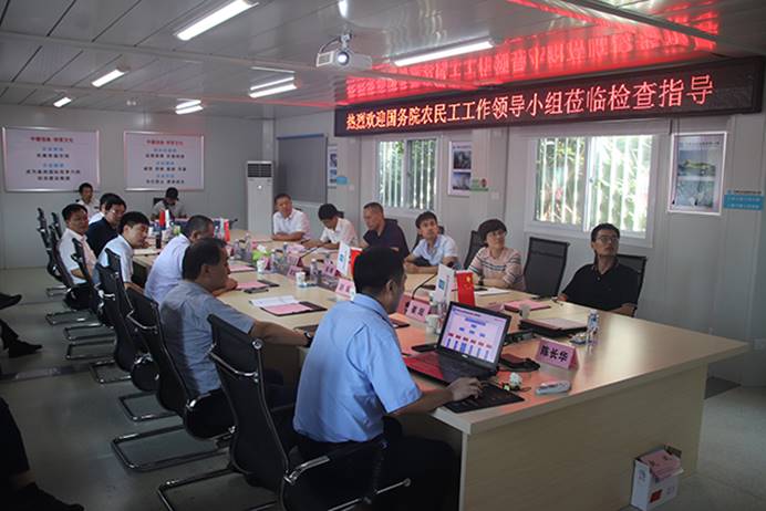 項(xiàng)目經(jīng)理陳長華簡要介紹了項(xiàng)目實(shí)際情況,并針對農(nóng)民工工資發(fā)放情況進(jìn)行了重點(diǎn)匯報(bào)。匯報(bào)結(jié)束后,國務(wù)院農(nóng)民工工作領(lǐng)導(dǎo)小組按要求對項(xiàng)目的資料進(jìn)行了嚴(yán)格的檢查,并邀請了幾位農(nóng)民工代表進(jìn)行談話,從是否簽訂勞動合同,是否及時收到工資等方面了解項(xiàng)目農(nóng)民工工資發(fā)放工作的落實(shí)情況。