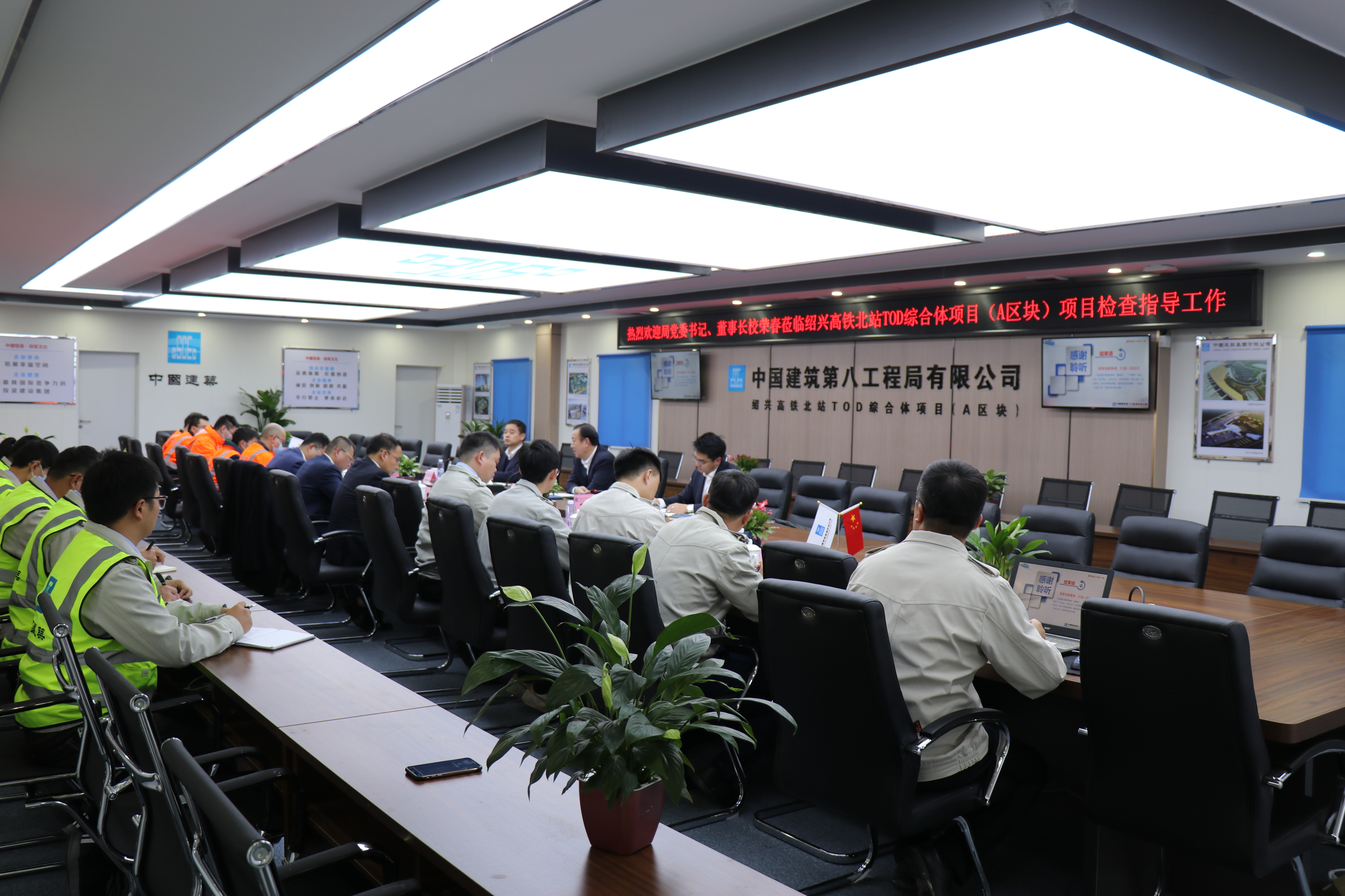11月27日,中建八局黨委書記、董事長(zhǎng)校榮春到紹興高鐵北站TOD綜合體項(xiàng)目調(diào)研,聽取了項(xiàng)目整體建設(shè)情況的匯報(bào),并提出指導(dǎo)意見。局工程管理部副總經(jīng)理汪黃東,一公司華東公司總經(jīng)理辛建龍,軌道公司浙江事業(yè)部經(jīng)理蔣彬,總承包項(xiàng)目負(fù)責(zé)人劉濤等參加。