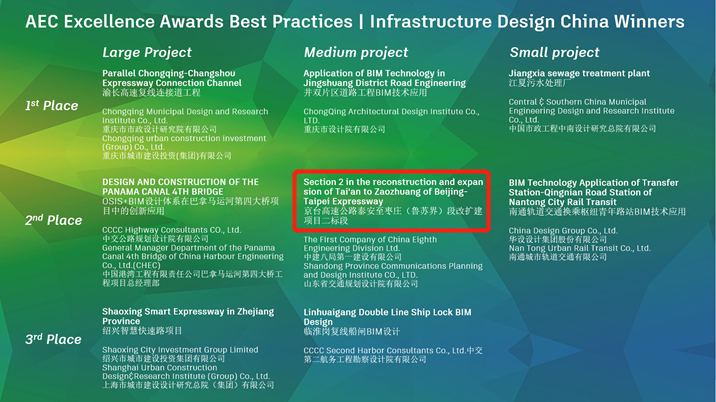 京臺高速改擴(kuò)建項目二標(biāo)段榮獲2020全球工程建設(shè)業(yè)卓越BIM大賽最佳實踐獎第二名