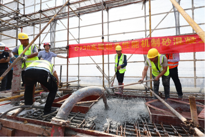 中建八局一公司率先運(yùn)用C130超高強(qiáng)機(jī)制砂混凝土