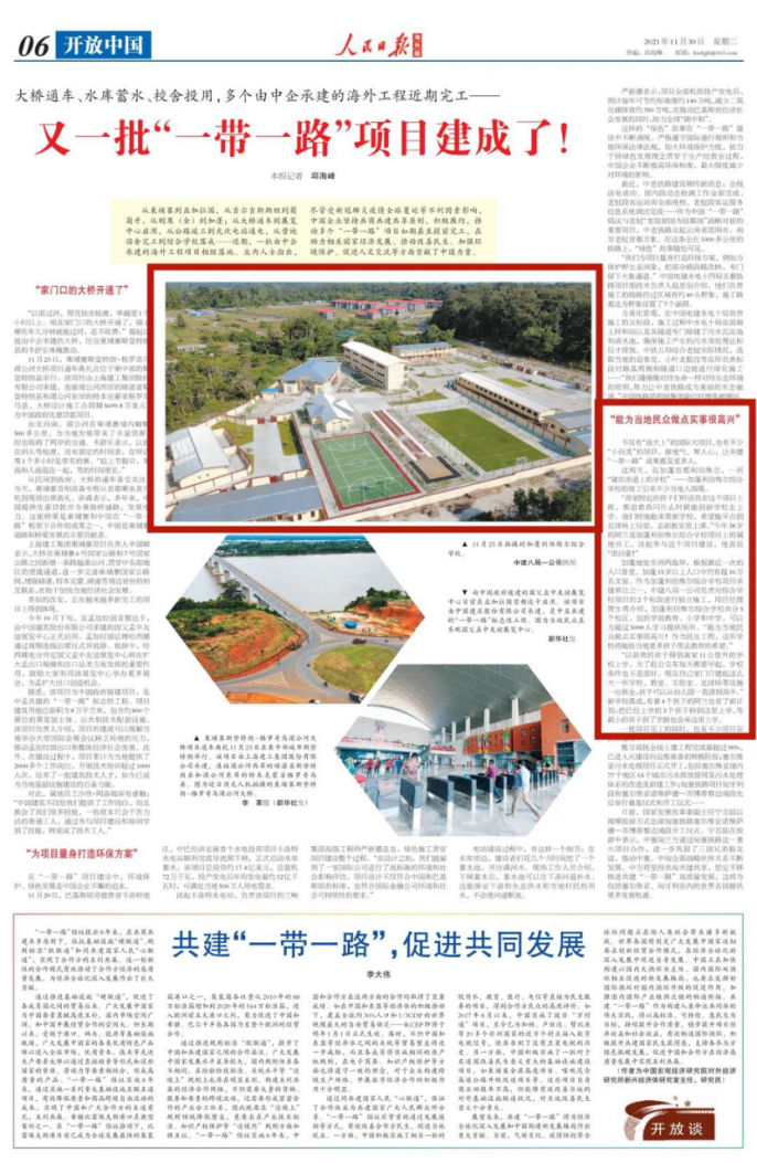 11月30日,《人民日?qǐng)?bào)》刊文《又一批“一帶一路”項(xiàng)目建成了!多個(gè)由中企承建海外工程近期完工》點(diǎn)贊報(bào)道中建八局一公司在“赤道上”參建的加蓬利伯維爾綜合學(xué)校項(xiàng)目。
