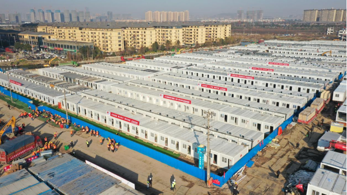 分區(qū)作戰(zhàn),一名黨員就是一面旗幟!現(xiàn)場劃分為17個工區(qū),81名黨員沖鋒在前,各工區(qū)責(zé)任人由具備10年以上資深施工經(jīng)驗的項目經(jīng)理擔(dān)任,公司工程管理部采取“3時快報”+“3級管控”相結(jié)合的方式,對現(xiàn)場平面管理實行全覆蓋動態(tài)跟蹤,助推隔離點建設(shè)全速推進。