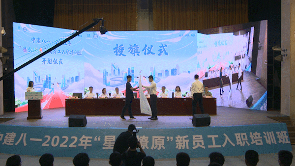 齊朋將代表中建精神的中建司旗授予新員工代表,希望大家迅速成長為一名出色的“中建八一人”,在公司高質(zhì)量發(fā)展進(jìn)程中綻放出最耀眼的光輝!
