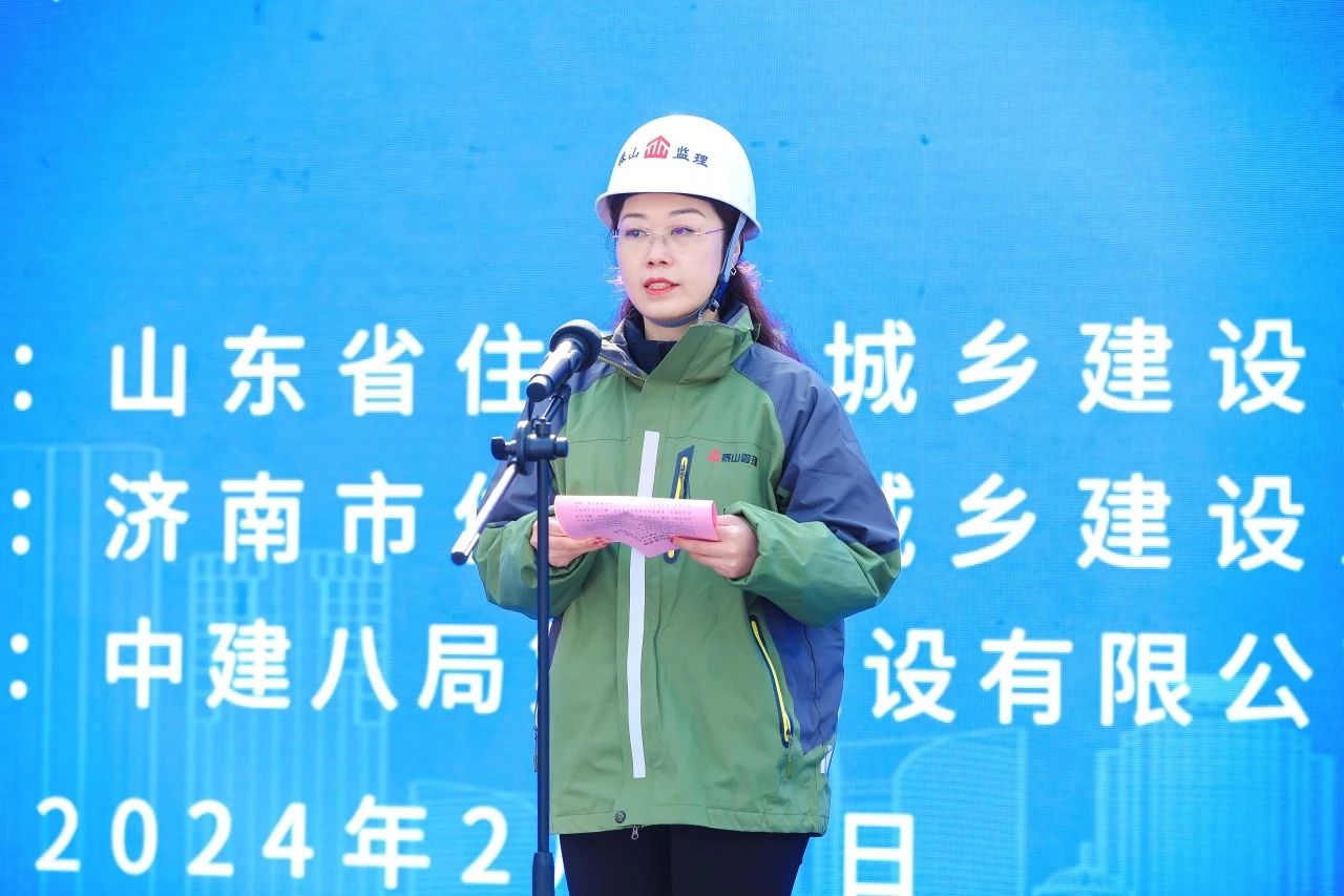 山東省住房和城鄉(xiāng)建設(shè)廳黨組書記任海濤,省住房和城鄉(xiāng)建設(shè)廳黨組成員、副廳長王潤曉,省應(yīng)急管理廳二級巡視員王憲國,省住房和城鄉(xiāng)建設(shè)廳二級巡視員殷濤,濟南市委常委、副市長任慶虎,市住房和城鄉(xiāng)建設(shè)局黨組書記、局長亓偉,市應(yīng)急管理局黨委委員、副局長劉慕平,市住房和城鄉(xiāng)建設(shè)局黨組成員、副局長李軍,省住房城鄉(xiāng)建設(shè)廳各處室相關(guān)負責(zé)同志,濟南市人民政府、市應(yīng)急管理局,市縣兩級住建部門主要負責(zé)同志,中建八局山東分局副局長陳立全,中建八局一公司黨委副書記、總經(jīng)理?;瘧棧綎|泰山工程項目管理有限公司董事長喬涵,各參建單位及工人代表共計300余人參加。