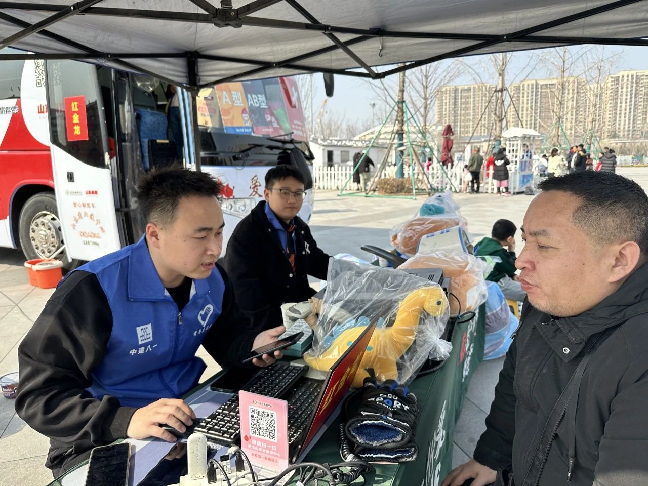 安裝公司“藍(lán)馬甲”青年志愿服務(wù)團(tuán)隊(duì)聯(lián)合山東省血液中心流動(dòng)獻(xiàn)血站,在現(xiàn)場(chǎng)為獻(xiàn)血者登記信息、測(cè)量血壓。